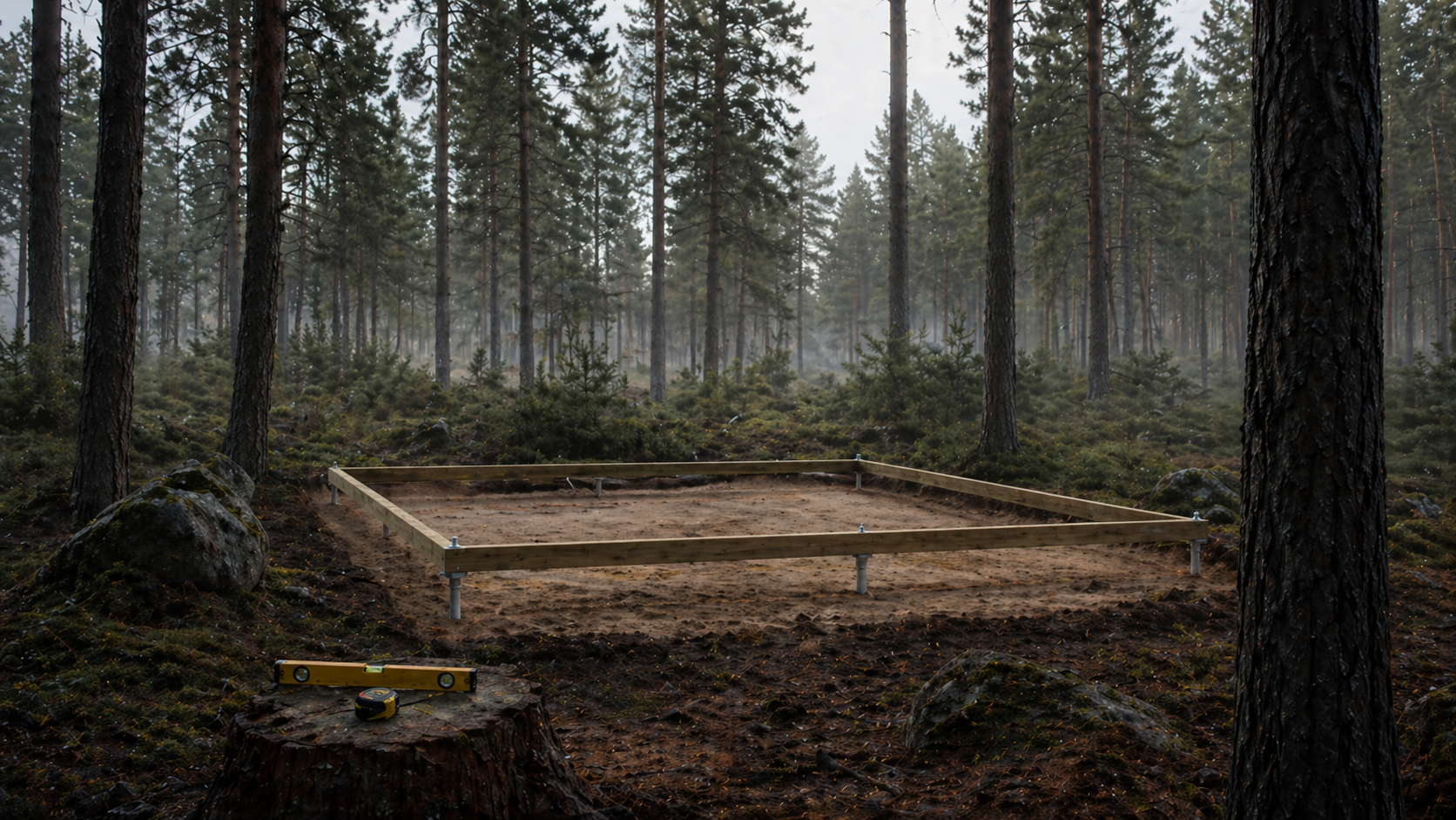 6 винтовых свай 76 мм. Без бетона, без разрешения (до 25 м², правило NT‑12).