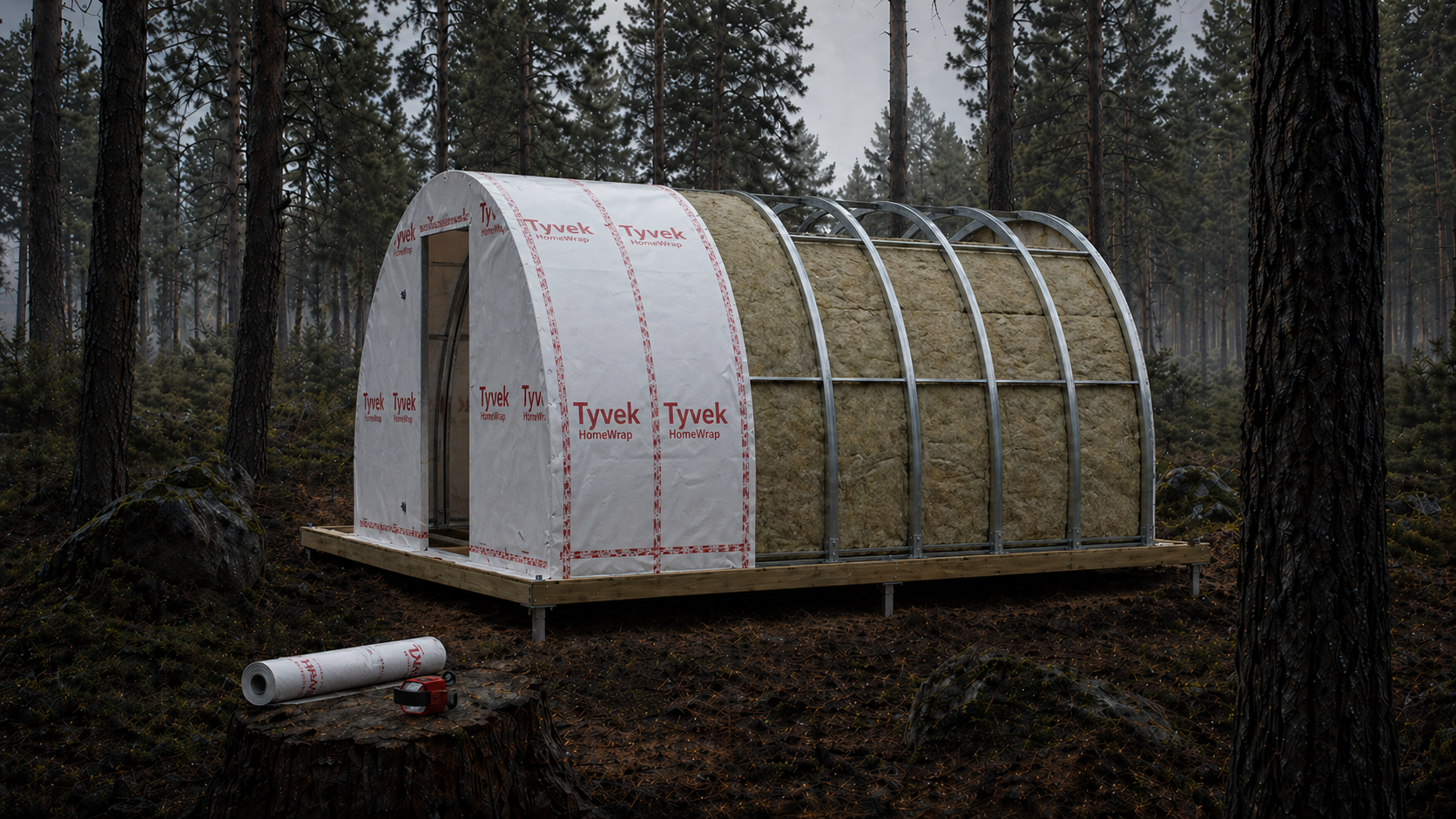 Rockwool 100 мм между арок, пароизоляция Tyvek внутрь. Дышит, не плесневеет.